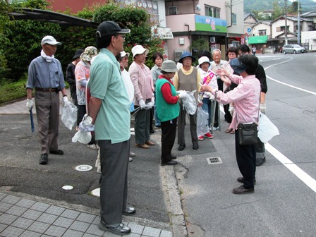 ☆今年度2回目の祭り前恒例の町内清掃を予定通り、グリーンクラブ、女性会を中心に26名の参加で3コースに分かれ実施しました。。。