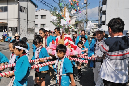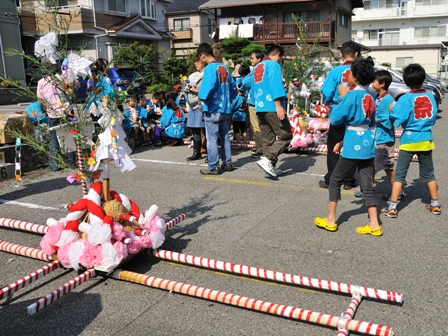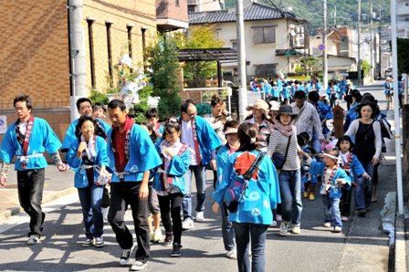 ☆10月16日(日)子ども神輿3台で町内を練り歩きました。