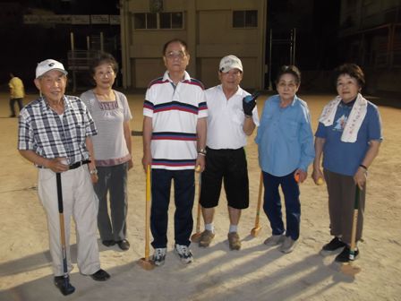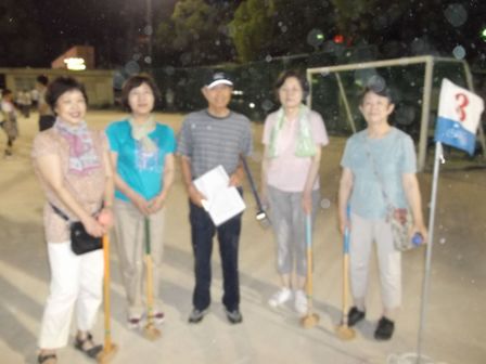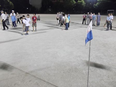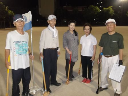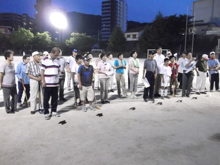 恒例のグラウンドゴルフ大会を行いました。 平成24年7月25日(水)19:30〜恒例のグラウンドゴルフ大会を行いました。 43名の参加者で夏休みの楽しいひと時を過ごすことが出来ました。 |