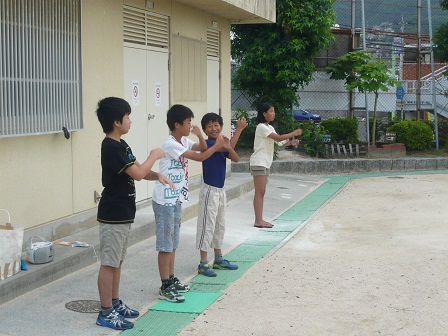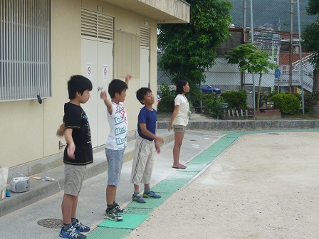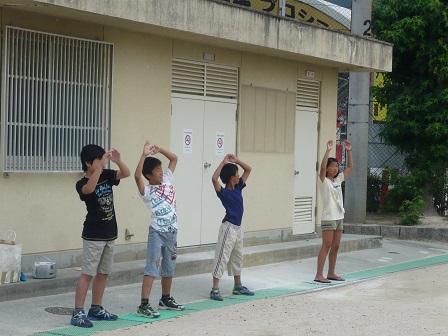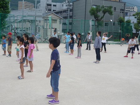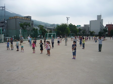 今年も戸坂小学校校庭でラジオ体操を行いました。