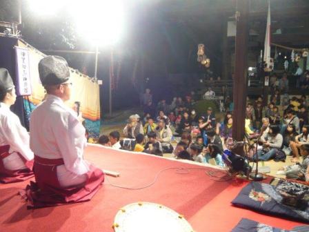 秋祭りでは5年に1回、近隣町内会持ち回りの「くるめ木神社」の余興担当として奉納神楽を行いました。三次市作木町の「伊賀和志神楽団」の皆さんにお願いし、素晴らしい神楽をみせていただき、観覧された皆さまからも好評価を得ました。ありがとうございました。