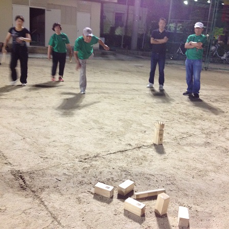 夏休みの校庭開放でKUBBを行い,約30名の参加を得て楽しいひと時を過ごす事が出来ました。参加して頂いた皆さんお疲れ様でした!!