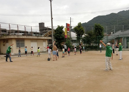 今年も戸坂小学校校庭でラジオ体操を行いました。