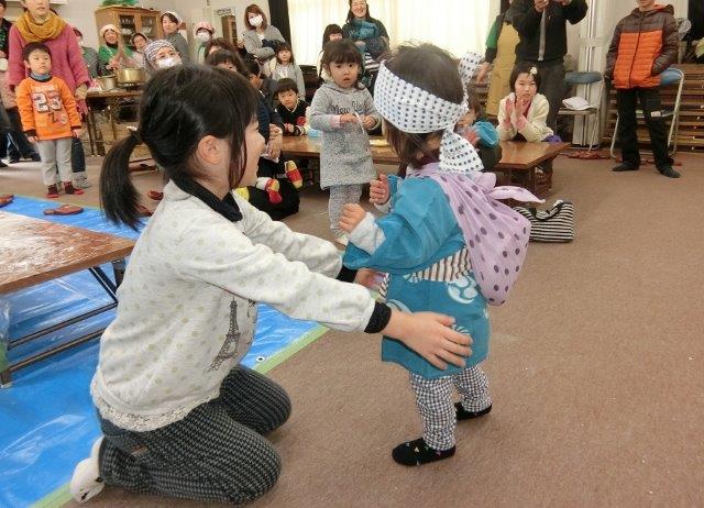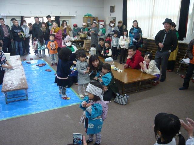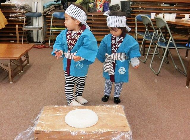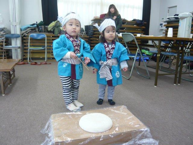 また、2名の1歳児が「健康で円満な一生が送れる」ことを願い、一升の丸餅を