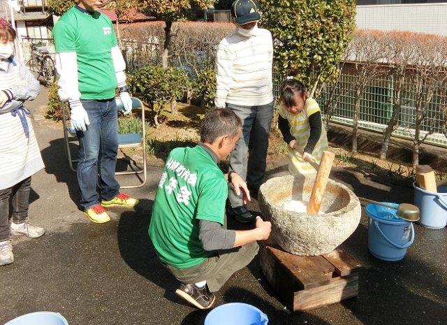 1月31日に初の試みで「餅つき大会」を開催しました。児童・未就学児童(60名)