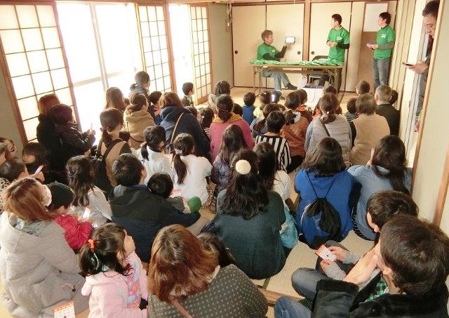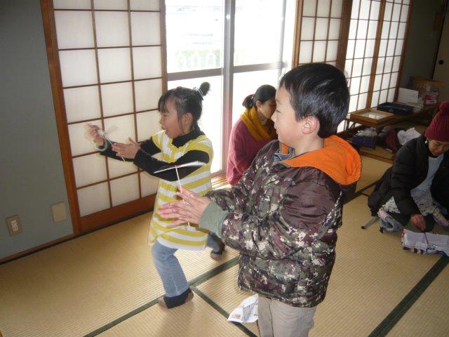 餅つきの他、空き時間を利用して、折紙、どんぐりコマ回し、ビンゴゲームを行い