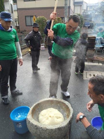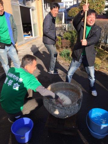 今回の「餅つき大会」は、盛年会を中心に、女性会・グリーンクラブの皆さんの