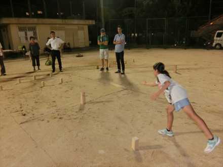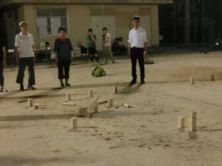 毎年夏休み恒例の校庭開放(7月27日)でKUBB大会を行いました。