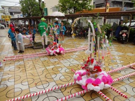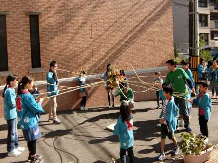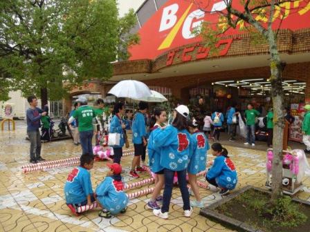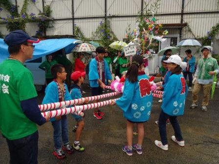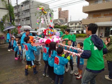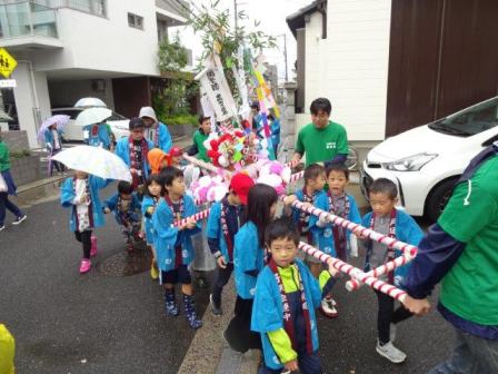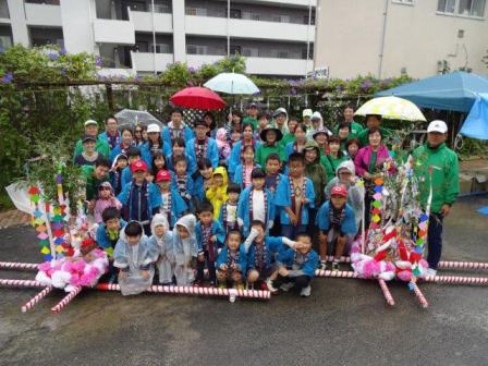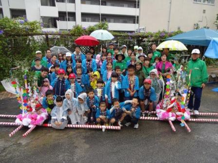 あいにくの雨模様の中,子ども27名,総勢60名で町内を練り歩きました。