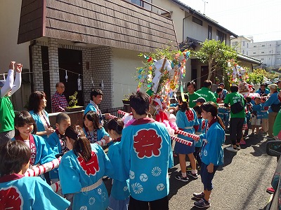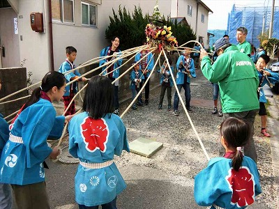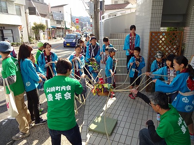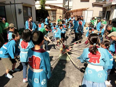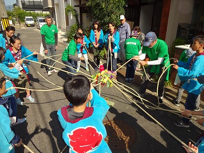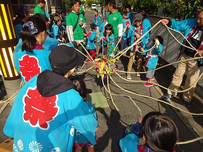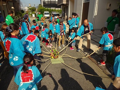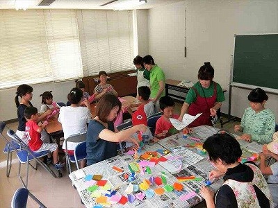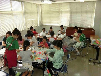 8月23日(木)戸坂公民館にて子どもクラブ、女性会等により秋祭りで使用する俵みこしの飾り作りを行いました。