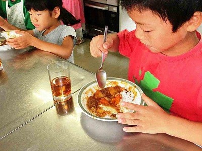 飾りを作った後は女性会で作られたカレーライスを参加者で頂きました。
