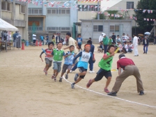団体戦 ボール運び。 ぶっちぎりの1位 |